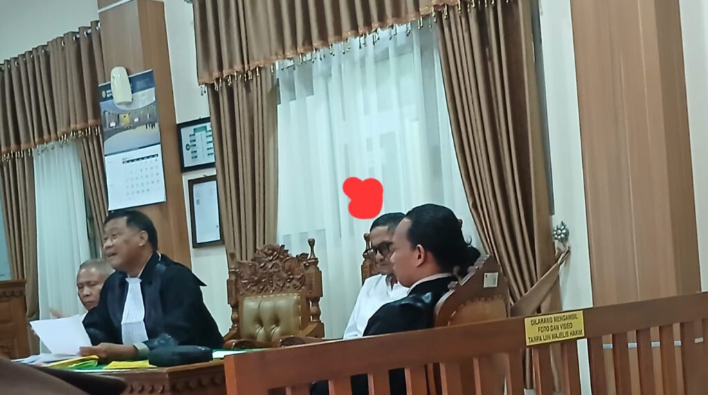 JEPARA, BRANINEWS.ID ||Saat sidang dimulai ,Mamat terlihat duduk disamping kiri Pos Bantuan Hukum ( POSBAKUM) penasehat hukum berambut Gondrong ini sedikit memberikan arti paham kepada terdakwa.