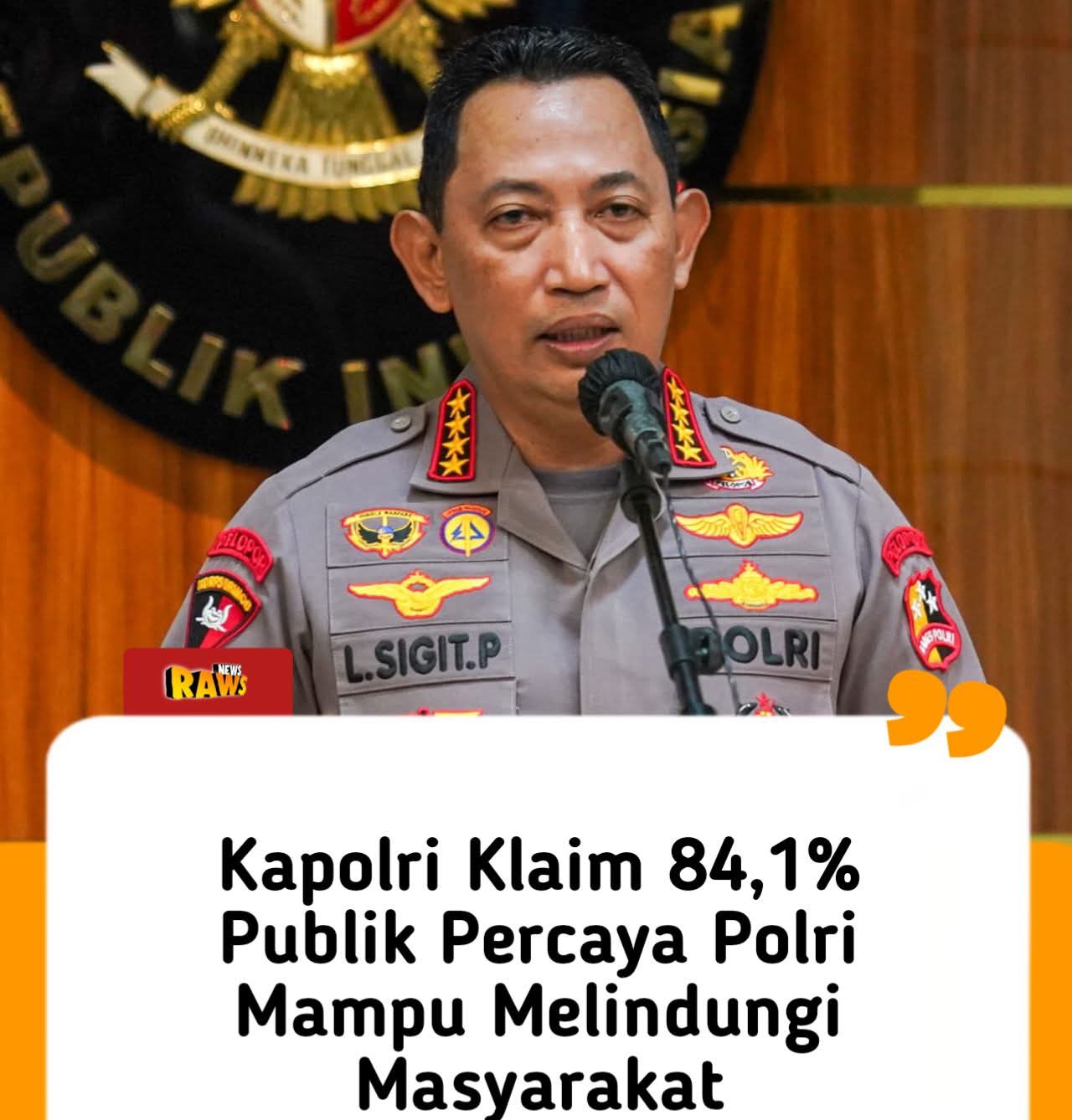 “Dalam survei 84,1 persen menyatakan Polri mampu melindungi masyarakat di wilayahnya. Tentunya kehadiran personel Polri di tengah masyarakat dirasakan membawa dampak positif,” kata Listyo Sigit pada acara Rilis Akhir Tahun Polri 2025 di Gedung Rupatama Mabes Polri, Jakarta, Selasa (30/12/2025), yang disiarkan dalam Breaking News KompasTV.