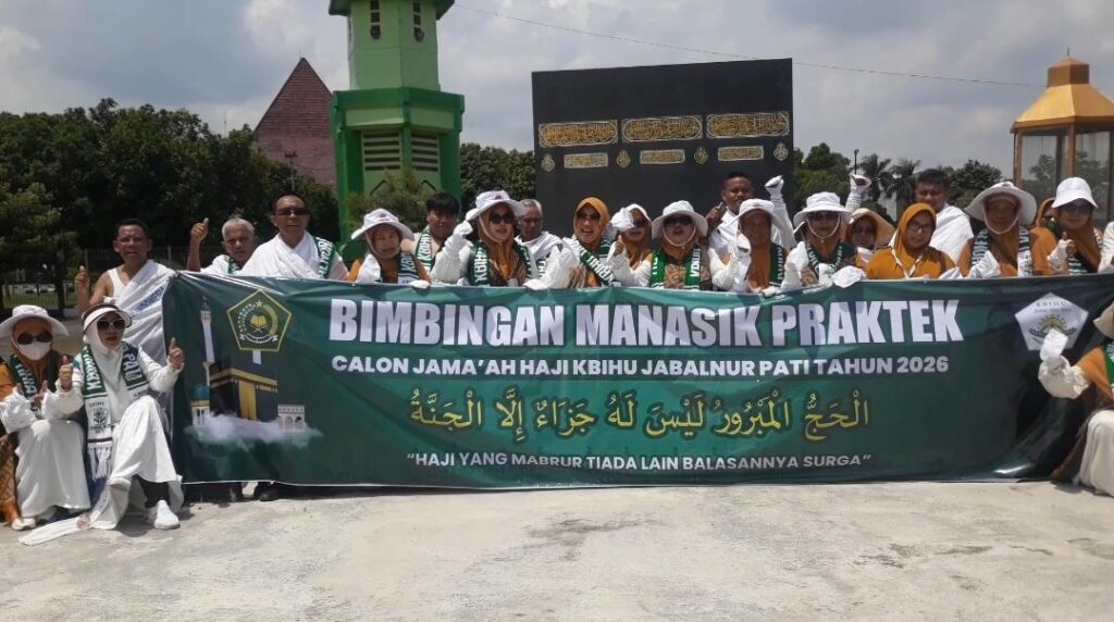 Kelompok Bimbingam Ibadah Haji dan Umroh (KBIHU) Jabalnur Pati menggelar manasik haji praktik, di Asrama Haji Donohudan Embarkasi Solo, Minggu (23/11/25), untuk Haji 2026.