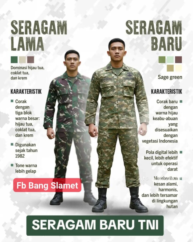 Tentara Nasional Indonesia (TNI) memiliki seragam Pakaian Dinas Lapangan (PDL) baru. Simak perubahan corak hingga desain seragam baru TNI dan bedanya dengan loreng Malvinas.