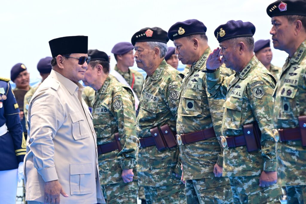 JAKARTA, BRANINEWS.ID || Menjelang HUT Ke-80 Tentara Nasional Indonesia, puluhan Kapal Perang TNI AL tunjukkan kekuatan maritimnya di hadapan Presiden RI Jenderal TNI (Purn.) Prabowo Subianto dalam kegiatan “Presidential Inspection” saat On Board di Kapal Markas KRI dr. Radjiman Wedyodiningrat-992 yang berlayar di Teluk Jakarta. Kamis (2/10).