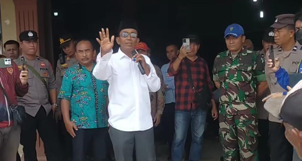 Kepala Desa Asempapan, Sukarno, saat menghadapi unjuk rasa warganya.